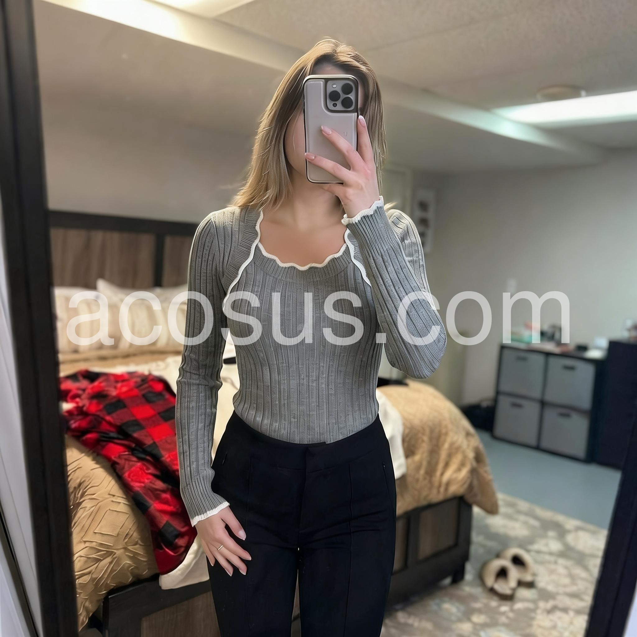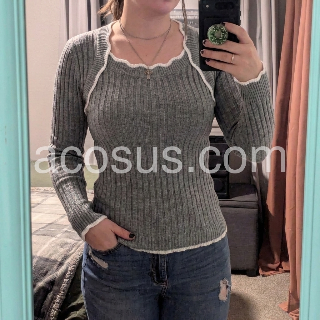 "Yes!It runs true to the garment size chart please choose your size based on your measurements."Stay cozy and stylish with our Grey Square Neck Long Sleeve Sweater. Made with high quality materials, this classic sweater offers a snug fit and an elegant square neckline. Enjoy the warmth and comfort of long sleeves, while looking effortlessly chic. Perfect for any occasion, this sweater is a must-have for your wardrobe.
