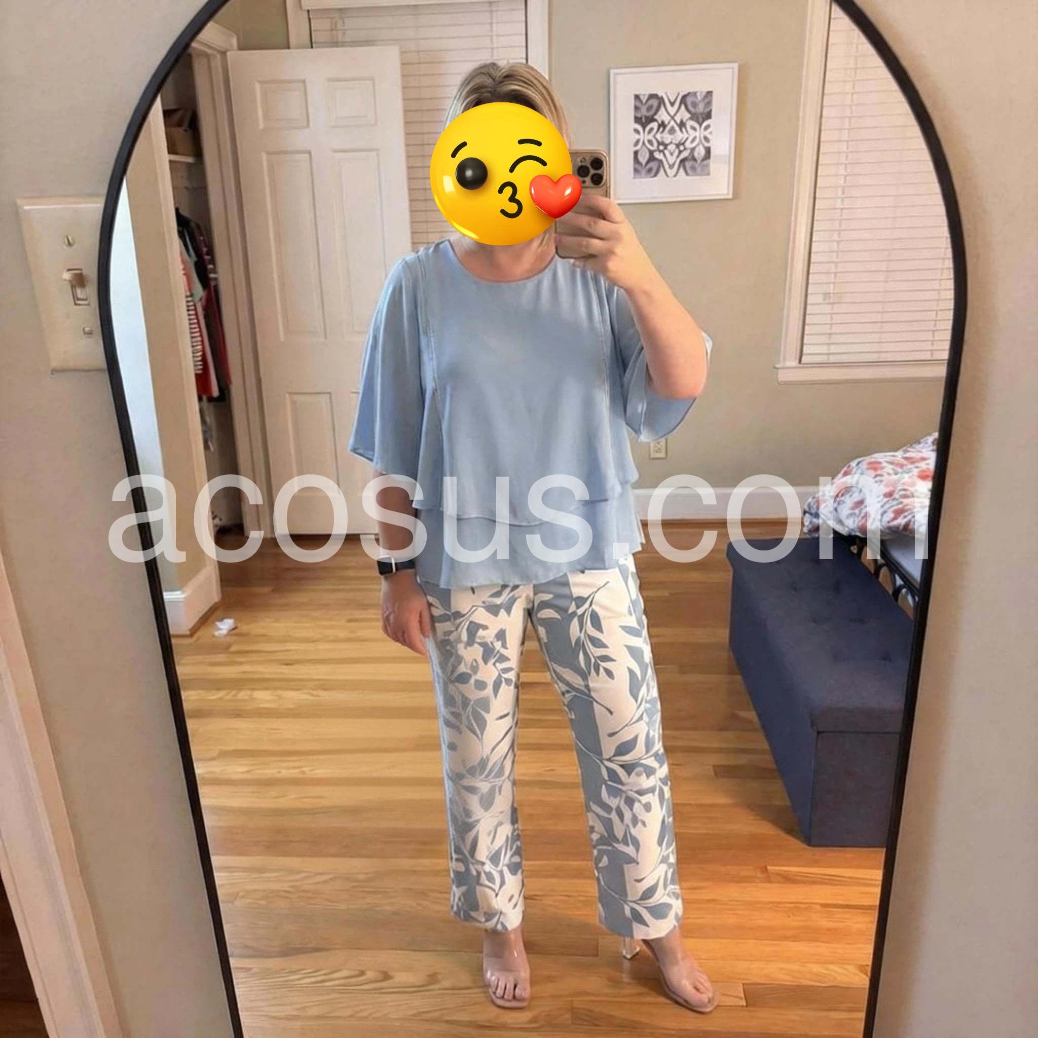 "Yes!It runs true to the garment size chart please choose your size based on your measurements."This Blue 3/4 Sleeve Two Piece Set offers a versatile and stylish clothing option. With its flattering 3/4 length sleeves and two-piece design, it is perfect for any occasion. Made with quality materials, it provides comfort and durability. Elevate your wardrobe with this must-have set.