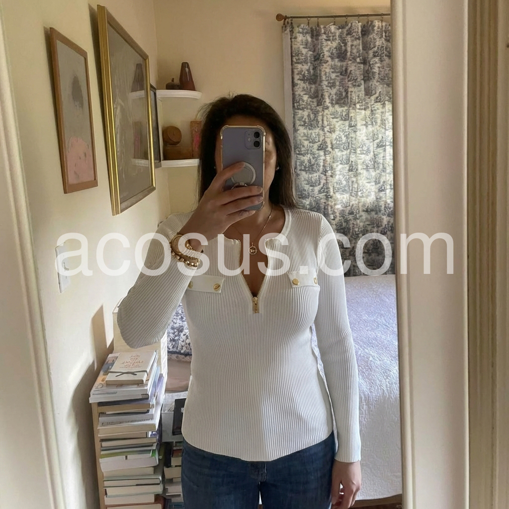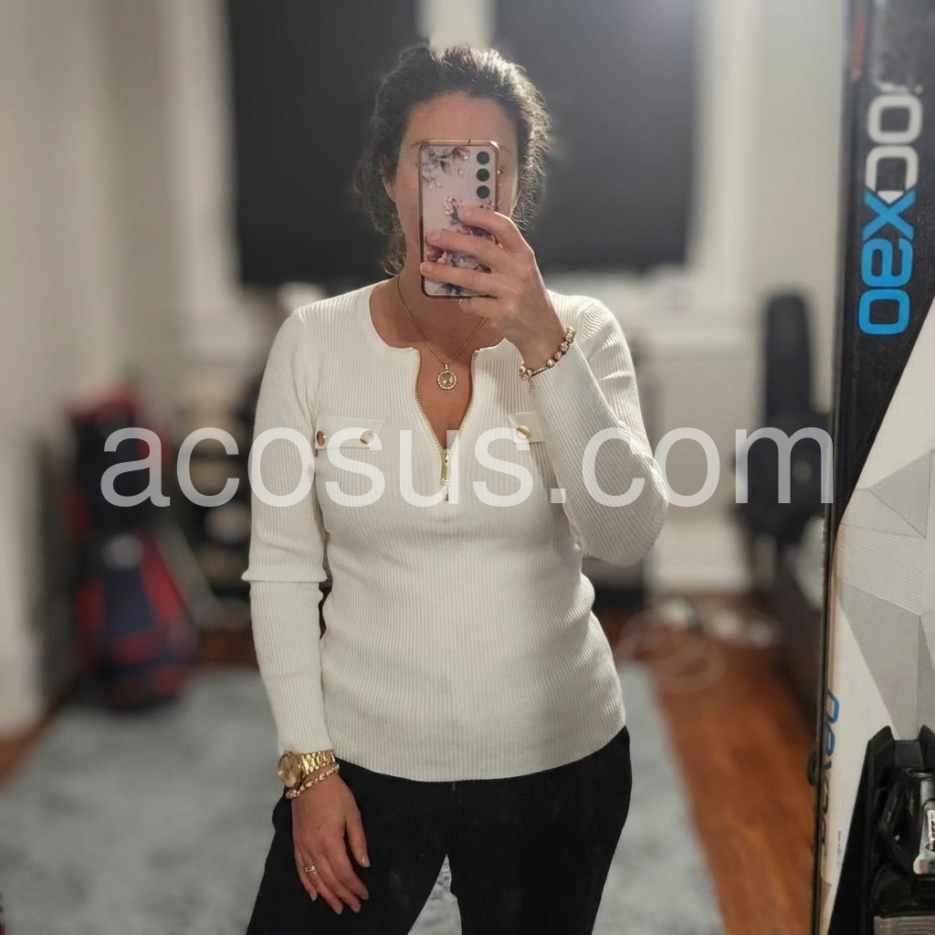 "Yes!It runs true to the garment size chart please choose your size based on your measurements."Elevate your wardrobe with our Chic Zip V-Neck White Plain Knit Top. The stylish v-neck neckline and subtle zip feature add a touch of sophistication to any outfit. Made from high-quality, soft knit material, this top is both comfortable and versatile. Perfect for any occasion, elevate your style with this must-have piece.