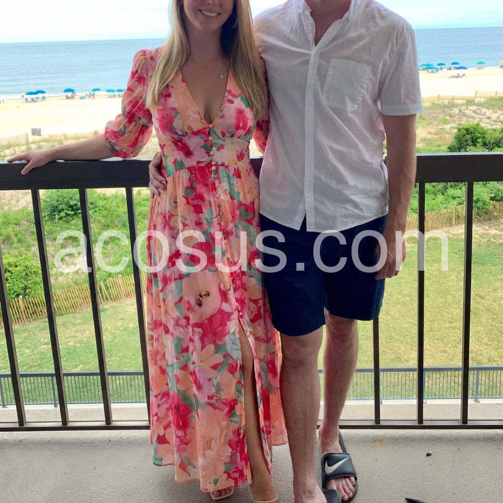 Sweet Pink V-Neck Maxi Dress