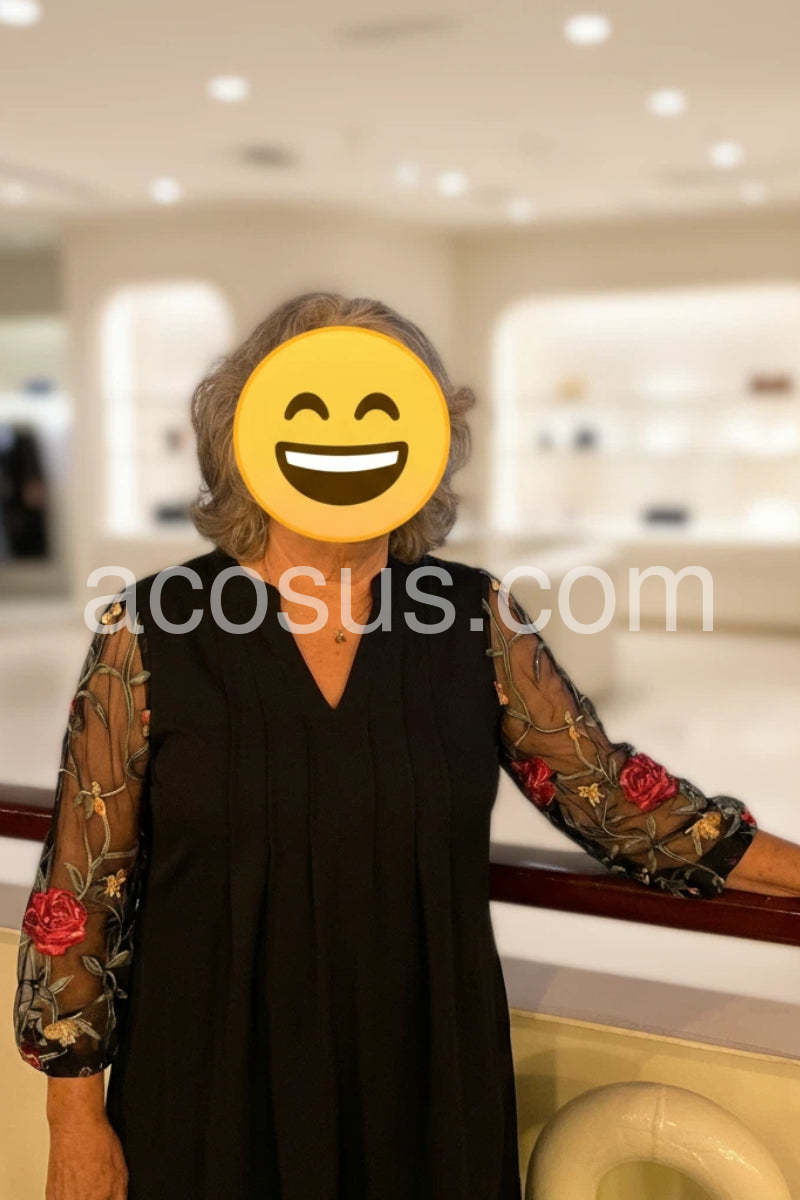 "Yes!It runs true to the garment size chart please choose your size based on your measurements."Introducing our newest addition: Elegant V-Neck Sheer Sleeve Mini Dress. This dress features a flattering V-neckline and sheer sleeves for a touch of elegance. Made with high-quality materials and expert craftsmanship, this dress is perfect for any special occasion. Look and feel sophisticated with this must-have dress.