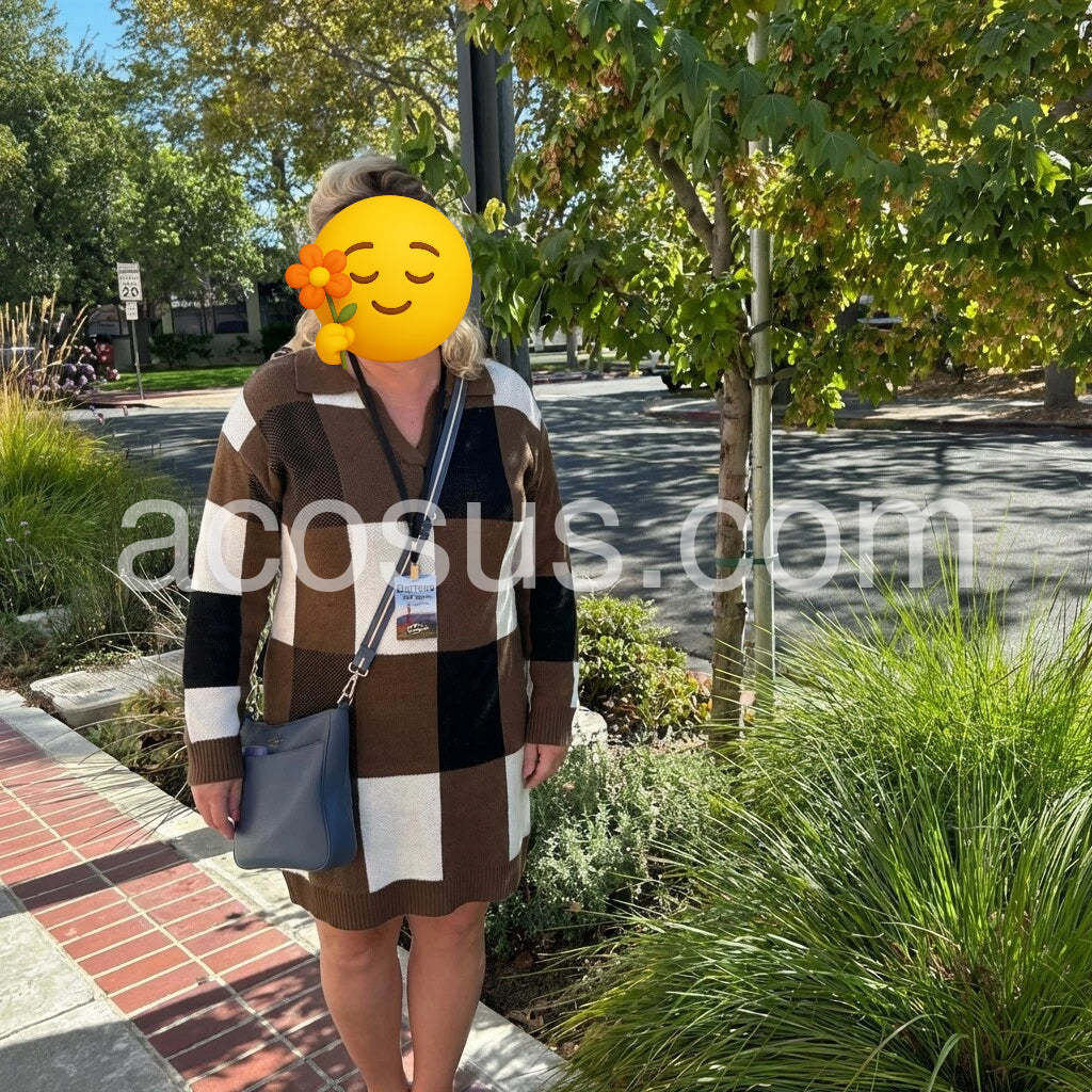 "Yes!It runs true to the garment size chart please choose your size based on your measurements."Introducing our Brown V-Neck Long Sleeve Mini Dress. Made from high-quality materials, it's designed to provide both style and comfort. Perfect for any occasion, this dress features a flattering v-neckline and long sleeves for a chic and elegant look. Upgrade your wardrobe with this versatile piece!