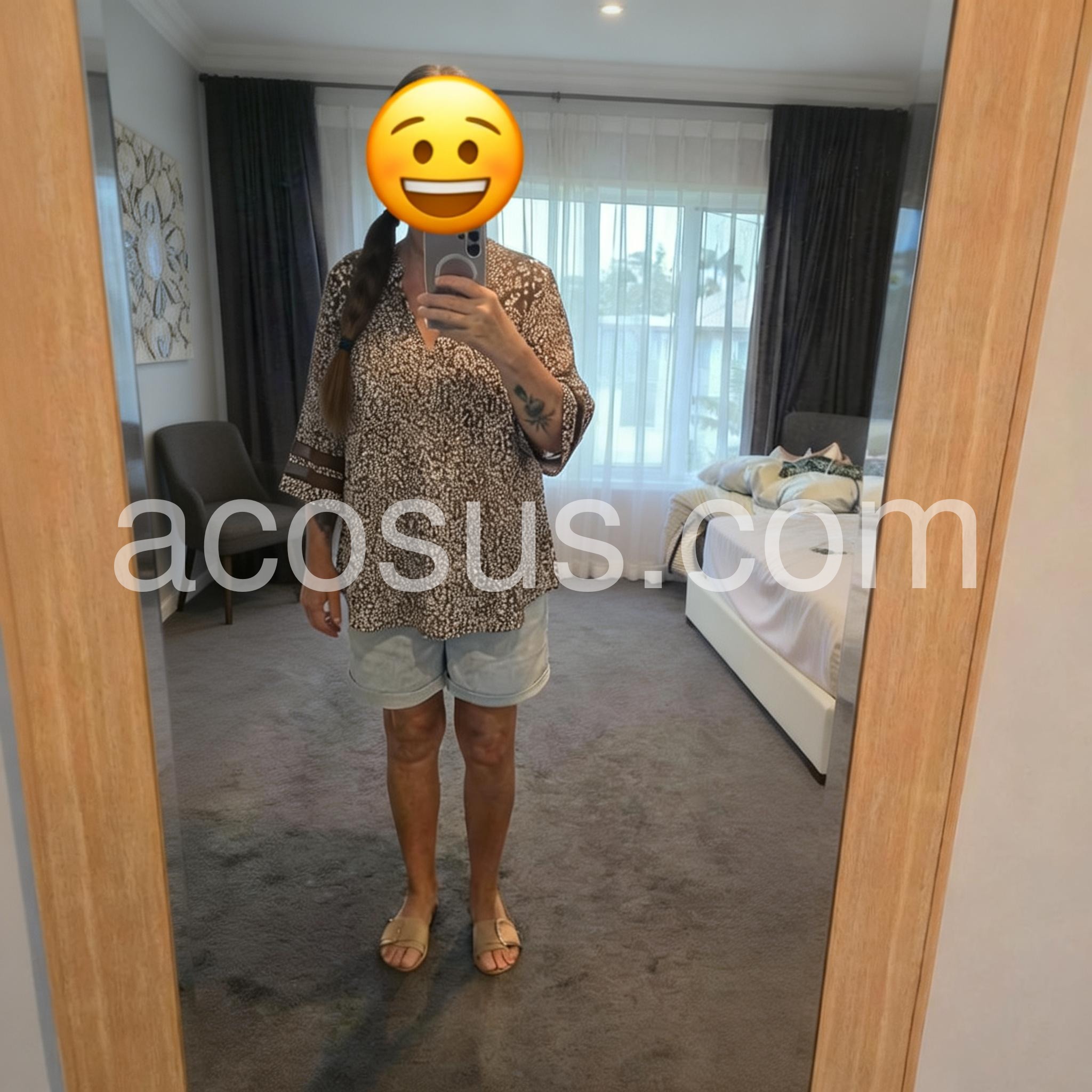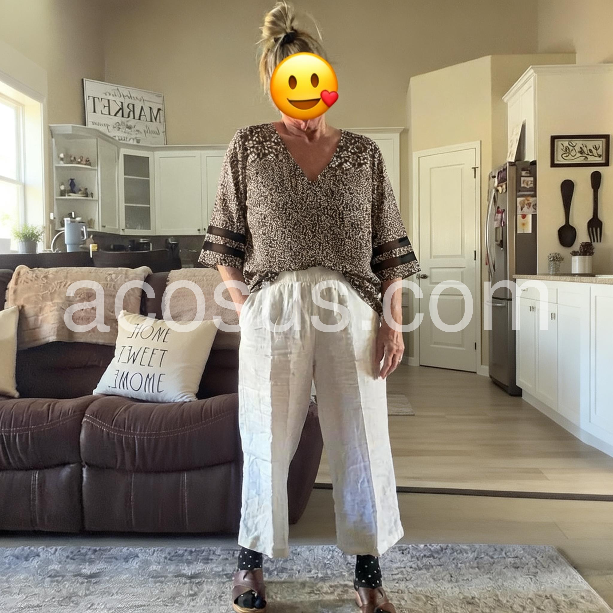 "Yes!It runs true to the garment size chart please choose your size based on your measurements."This brown V-neck 3/4 sleeve top is a versatile addition to any wardrobe. Made from high-quality fabric, it offers both comfort and style. With its classic design and flattering neckline, it is perfect for any occasion. Elevate your look with this timeless piece.
